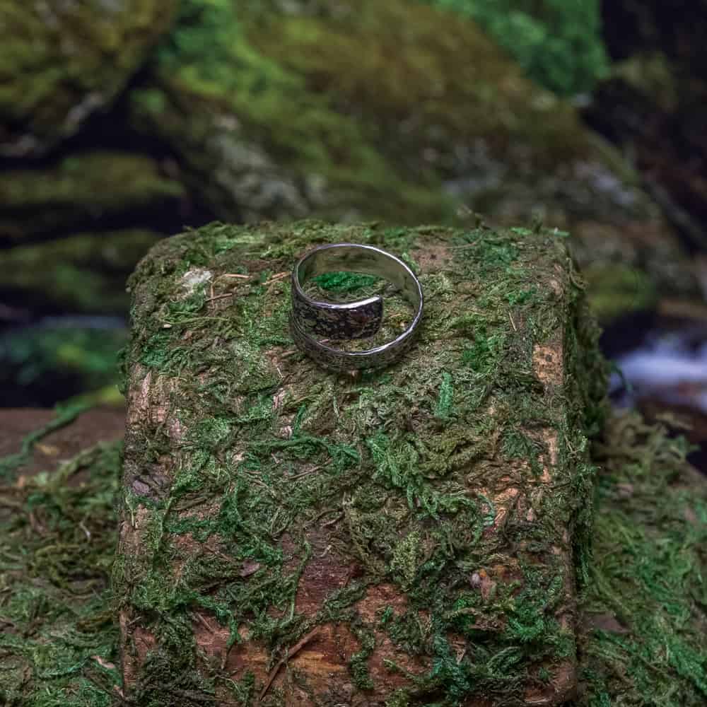I wanted to capture that sense of time and natural structure, but in a way that still felt wearable and fluid. The ring wraps around the finger in a spiral, with raised detailing that gives it depth without being bulky.